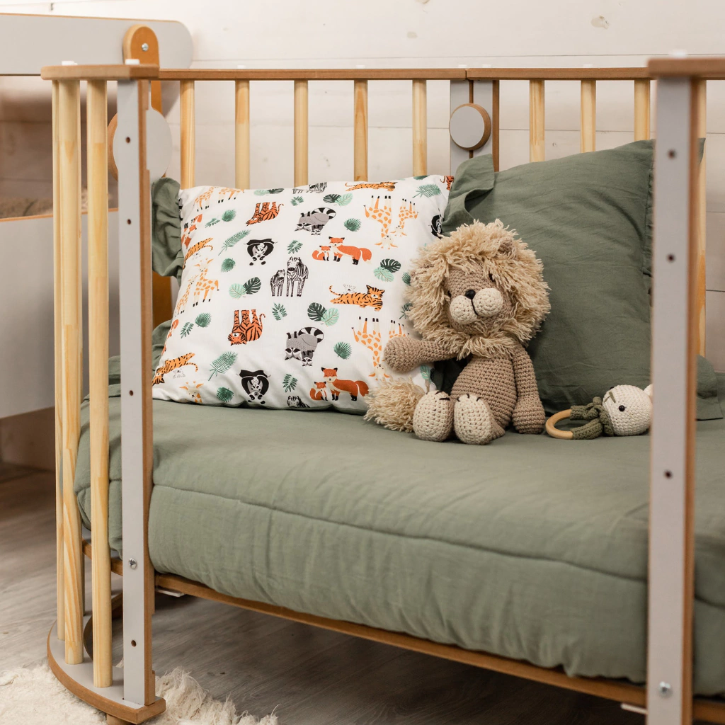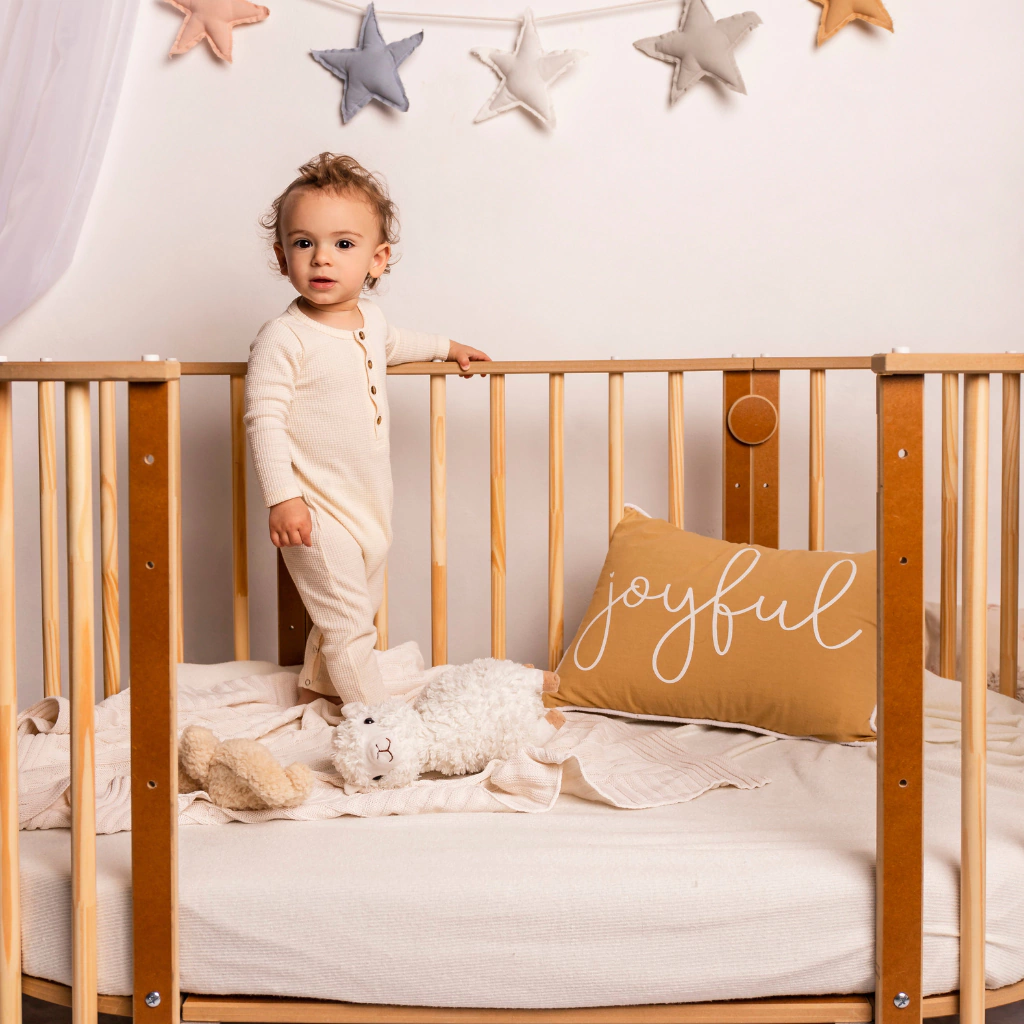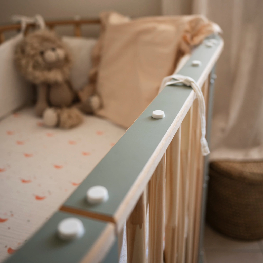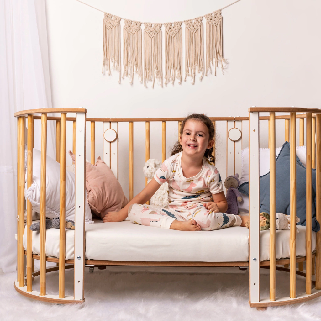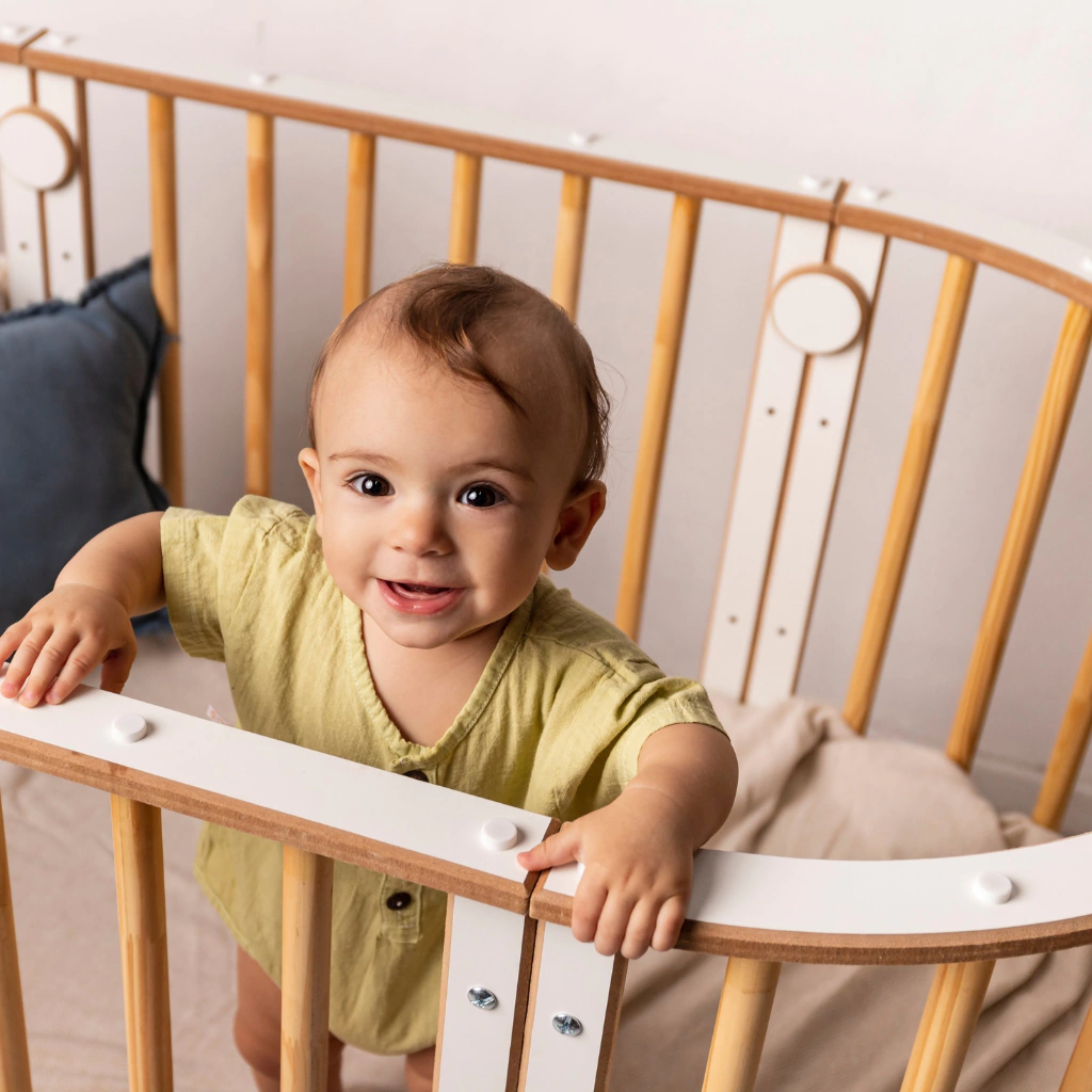 La cuna Wooden se adapta al crecimiento de los niños, desde el nacimiento hasta la edad adulta en su formato de sillones. Consta de 3 etapas: en un principio, se puede utilizar como Moisés, luego como cunita, pudiendo variar la altura de la base del colchón. Luego, a partir de los 14 meses aproximadamente, se puede utilizar como camita estilo Montessori, sacando la baranda y bajando la base, favoreciendo la autonomía y libertad para que puedan subir y bajar solos. En esta etapa, se puede utilizar hasta los 3 años aproximadamente. Por último, se pueden utilizar como 2 silloncitos para la habitación. Su forma ovalada aporta calidez y sensación de seguridad en los bebés, y las barras permiten una excelente circulación del aire. Viene con rueditas para su fácil traslado. Las mismas también pueden removerse para que quede fija, e incluye el brazo para colocar un móvil.